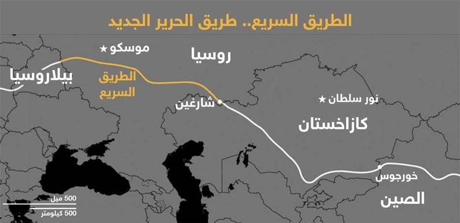 وأضافت الصحيفة الروسية أن العمل قد بدأ بالفعل حول مركز "ساغارتشين" الحدودي بين كازاخستان وروسيا، في الطرف الشرقي من الطريق.