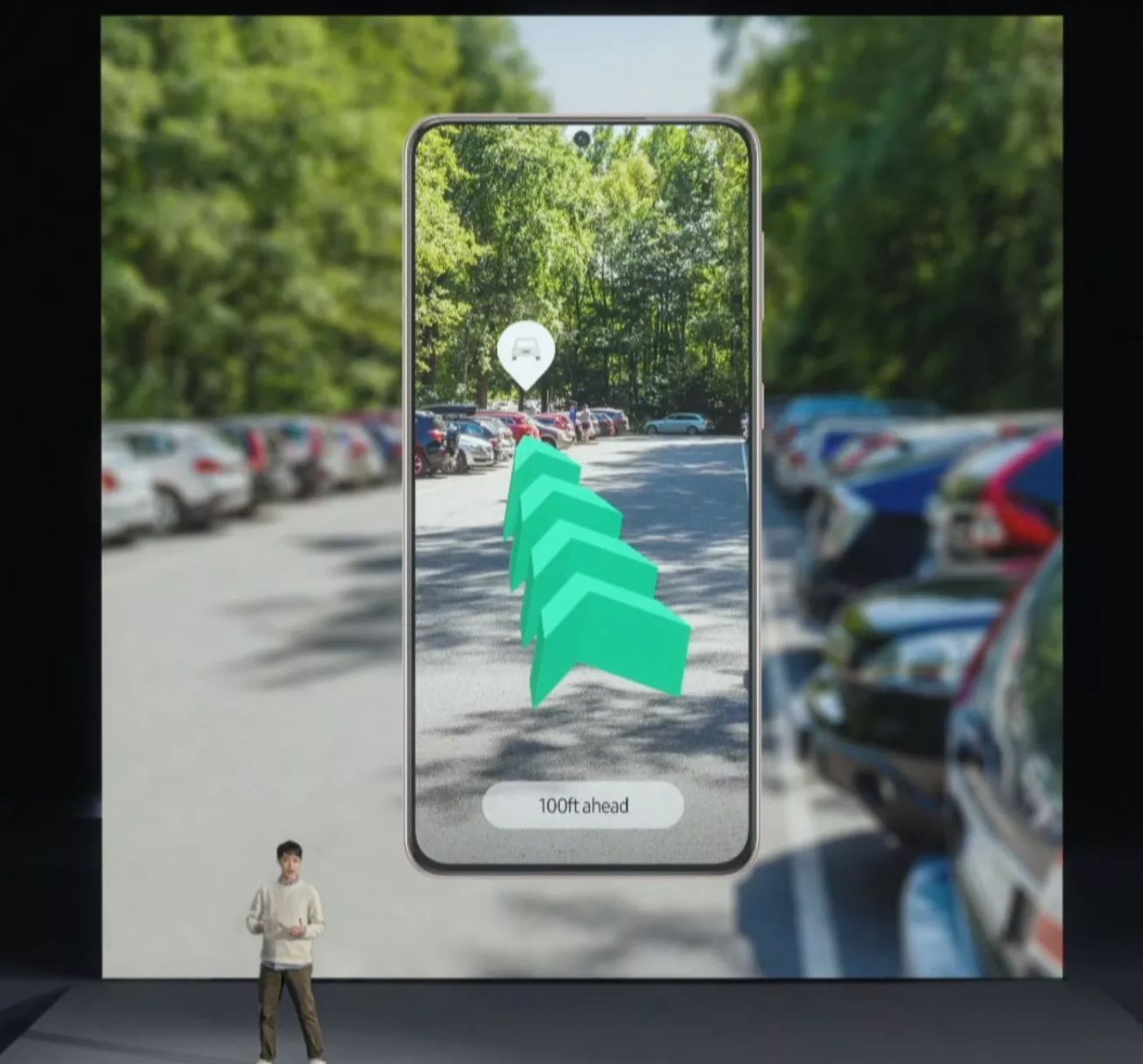 وأظهرت "سامسونغ" أيضاً كيف يمكن للتكنولوجيا أن تتيح للمستخدم العثور على سيارته في المرائب المزدحمة، مع عدسة الكاميرا الواقع المعزز التي جلبتها إلى هواتفها. وتعمل هذه الميزة مع السيارات المجهزة بتقنية UWB والهواتف التي تدعم UWB فقط.