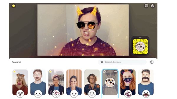 لذلك طورت شركة سناب تطبيقا يُسمى (Snap Camera) يمكنك تثبيته في حاسوبك، ويتيح لك مجموعة متنوعة من الفلاتر الممتعة التي تضيف تأثيرات على وجهك وخلفيتك لاستخدامها في التجمعات العائلية عبر الإنترنت، وفي محادثاتك مع الأصدقاء، وكذلك في اجتماعات العمل.