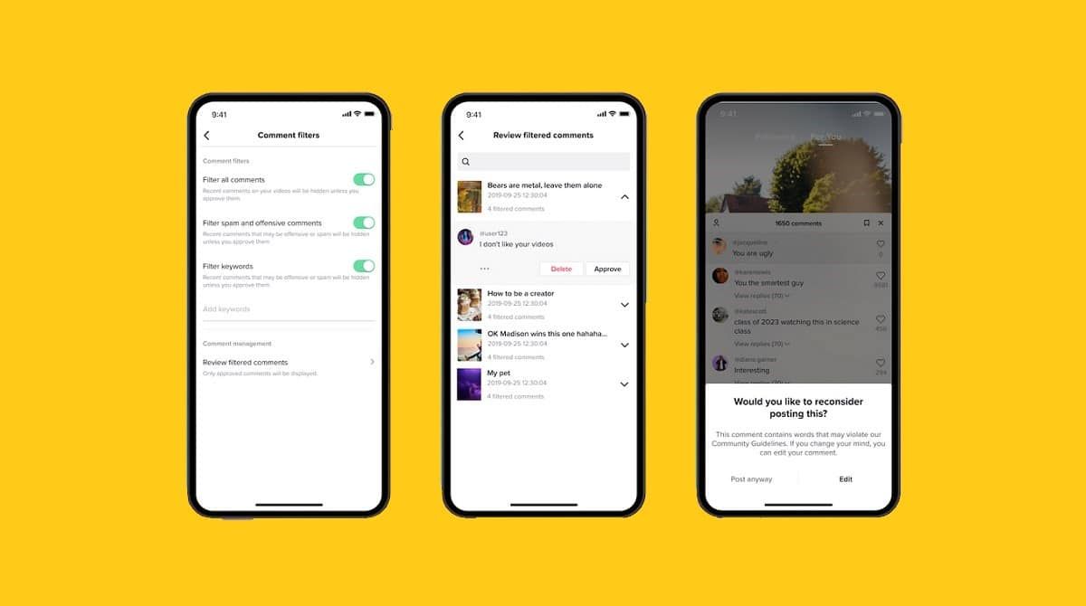 وفر تطبيق TikTok سابقًا ميزة تتيح للمستخدمين تصفية التعليقات حسب الكلمات الرئيسية حتى يتمكنوا من منع نشر الإهانات أو الألفاظ النابية أو أي محتوى آخر يمثل مشكلة على مقاطع الفيديو الخاصة بهم.