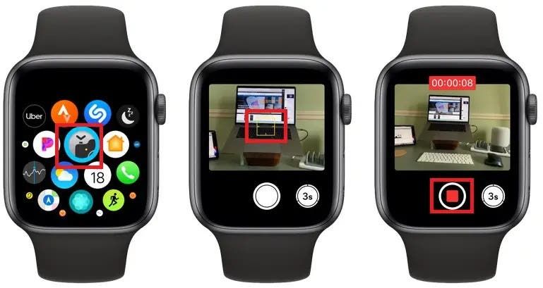 • افتح تطبيق الكاميرا في ساعة آبل الذكية، وسيؤدي ذلك أيضا إلى فتح تطبيق الكاميرا في الهاتف.