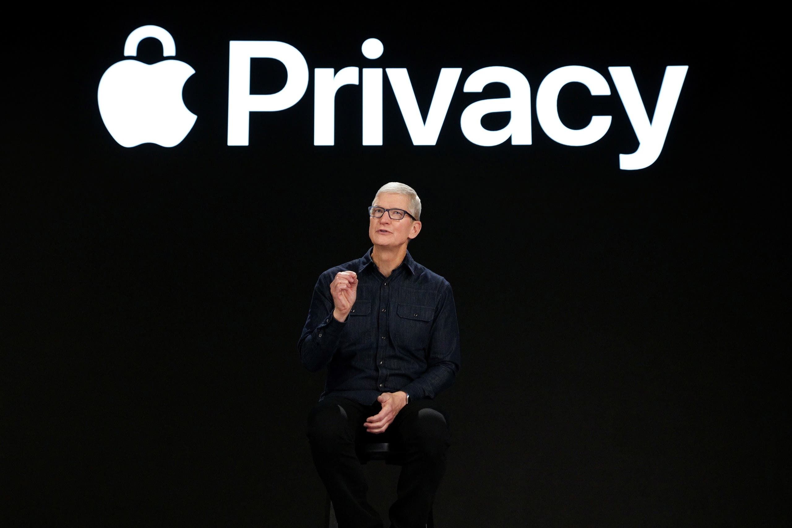 تيم كوك يتحدث خلال المؤتمر أمس عن إجراءات الخصوصية الجديدة