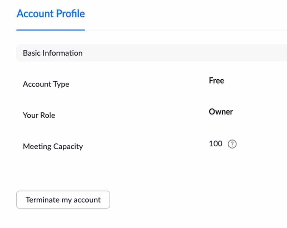 يمكنك في هذه الحالة حذف حساب المنصة تمامًا، وهذا يعني حذف جميع بياناتك المسجلة لدى المنصة والتوقف عن استخدامها. ولكن إن كنت مشتركًا في النسخة المدفوعة من Zoom فإنك تحتاج لإلغاء اشتراكك في البداية قبل حذف الحساب.