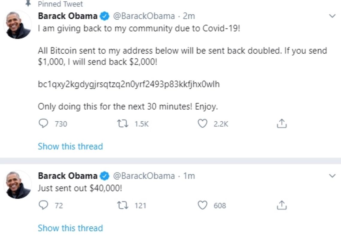 وطال هذا الهجوم تحديداً حسابات الرئيسين الأميركيين الحالي جو بايدن والأسبق باراك أوباما والمليارديرين إيلون ماسك وبيل غايتس.