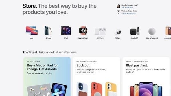 وكان موقع الشركة قد أظهر في السابق علامة تبويب "المتجر"، التي توجه المستخدمين إلى متجر آبل الإلكتروني. ولكن تم استبدال هذه الآلية بروابط الشراء ضمن كل فئة.