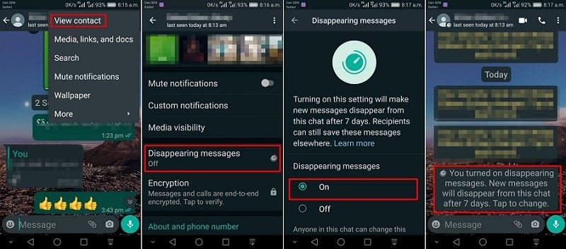 - ارجع للدردشة مرة أخرى لتجد رسالة تفيد بتفعيل الميزة.