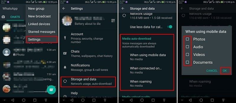 يحفظ تطبيق واتساب جميع الوسائط المرسلة في هاتفك بمجرد فتحها. ويؤدي هذا الأمر إلى استهلاك مساحة التخزين، ومن أجل إيقاف ذلك اتبع الخطوات التالية: