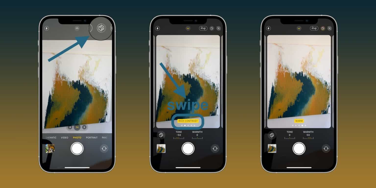 يمكنك اختيار أساليب التصوير الجديدة عبر التوجه إلى تطبيق الكاميرا، والضغط على الزر الخاص بها.