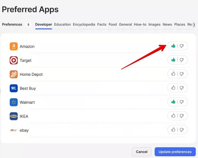بالنسبة للمستخدم، يمكنه تحديد التطبيقات التي تظهر له في نتائج البحث عن طريق الإعجاب بتطبيقه المفضل داخل متجر التطبيقات، مما يتيح له للاطلاع على المعلومات من المصادر التي يثق بها والتطبيقات التي يفضلها أولاً.