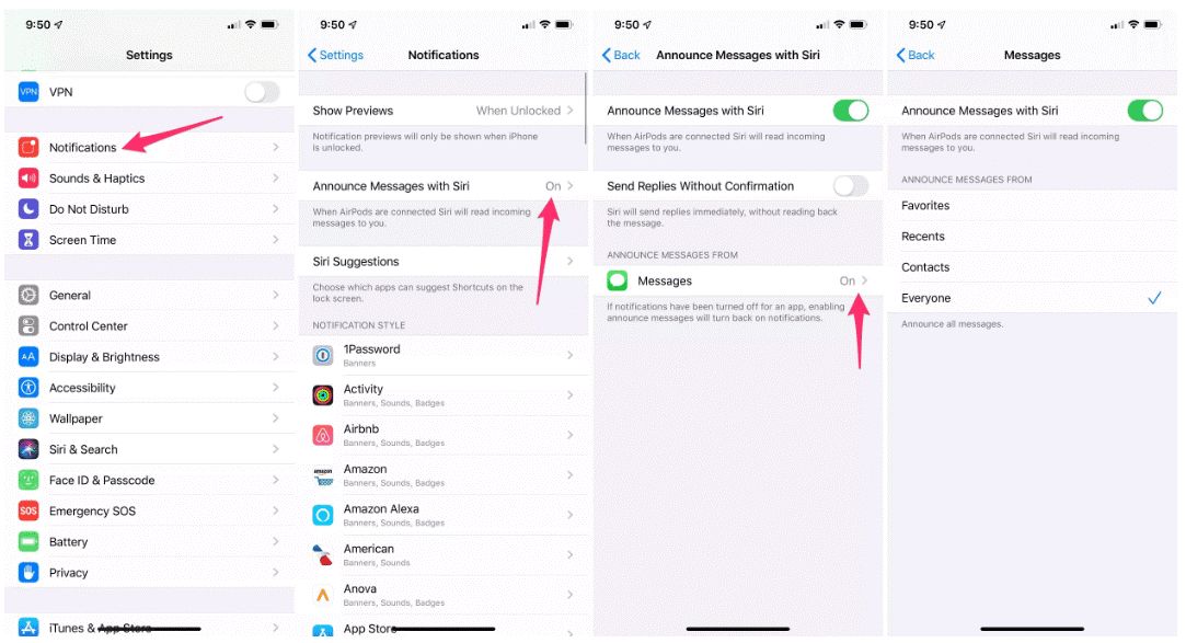 الإعلان عن الرسائل عن طريق "سيري" أصبح مقيدا بجهات الاتصال التي تختارهاويمكن الوصول إلى هذه الميزة عن طريق الإعدادات "Settings"،ثم الإشعارات "Notifications"، إعلان الرسائل مع سيري"Announe Messages with Siri" لتختار إعلان الرسائل من جهات الاتصال الخاصة بك فقط.