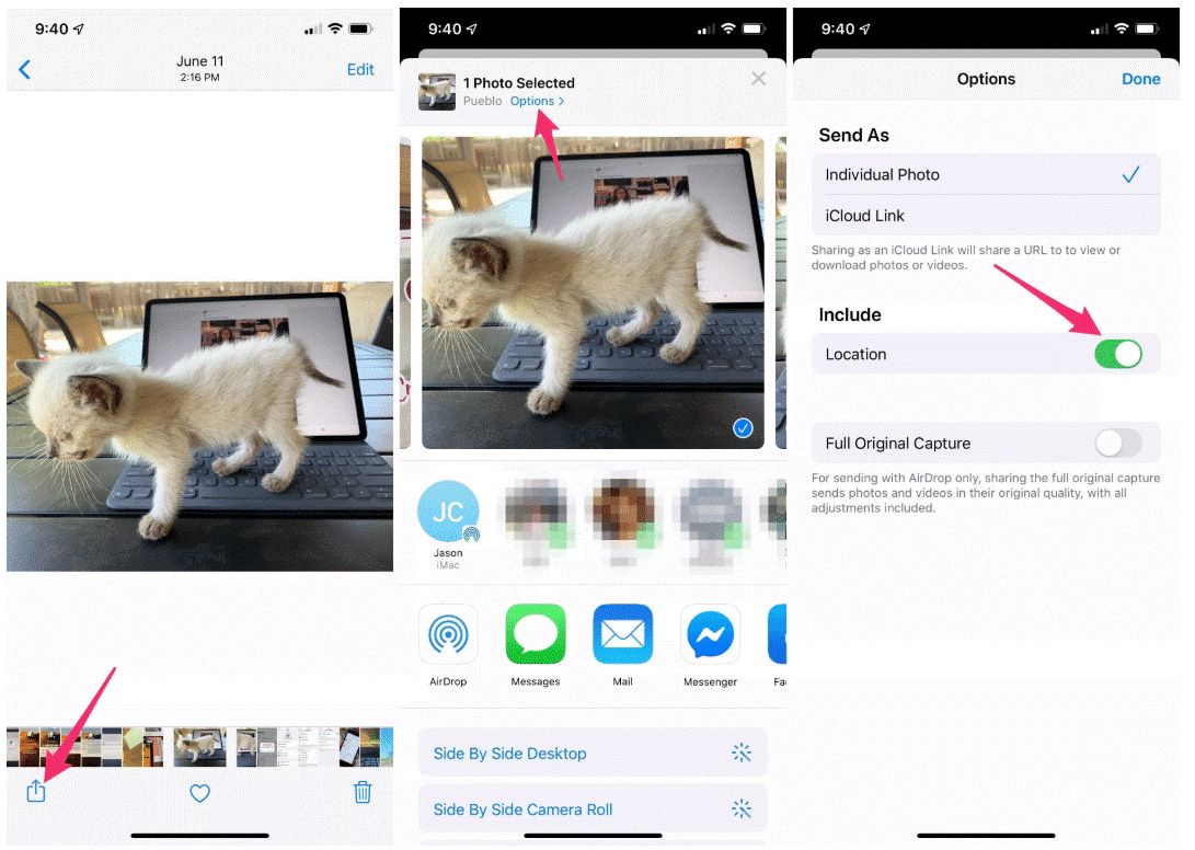 أصبح بإمكان المستخدمين الآن مشاركة الصور على مواقع التواصل أو البريد الإلكتروني والرسائل من تطبيق الصور الخاص بآيفون مع إزالة معلومات الموقع.