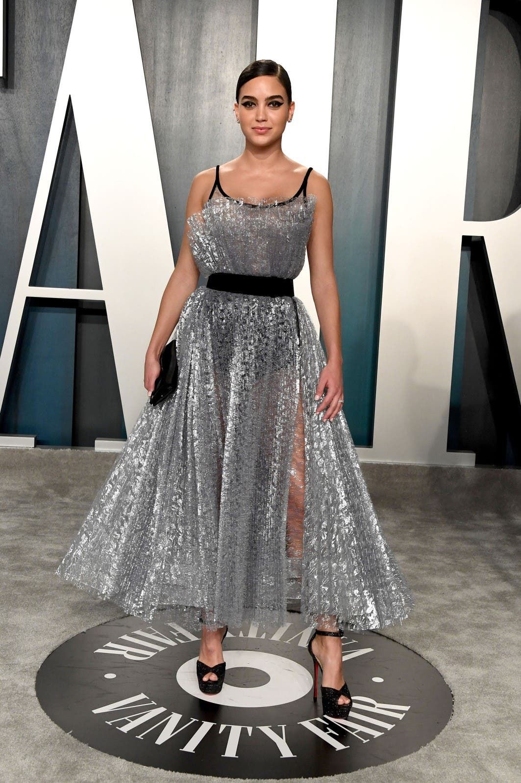 - اعتمدت الممثلة المكسيكيّة ميليسا باريرا ثوباً من التول المعدنيّ البرّاق للظهور في حفل فانيتي فير التالي لحفل الأوسكار. تزيّنت إطلالتها بحزام مخمليّ عند الخصر، وهي اختارتها من مجموعة Georges Chakra للخياطة الراقية الخاصة بخريف وشتاء2018-2019 ، ونسّقتها مع صندل وحقيبة باللون الأسود.