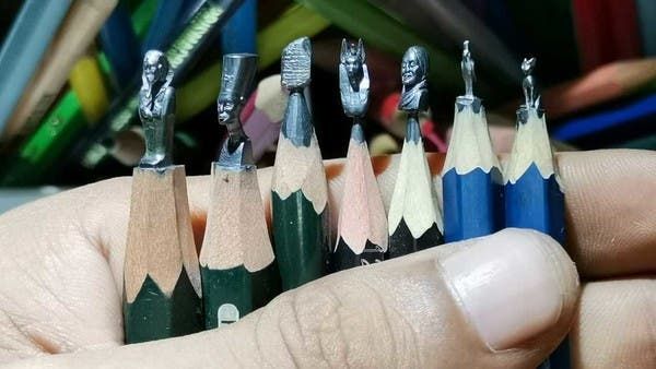 صور مبهرة.. فنان مصري ينحت أبرز الآثار على أقلام الرصاص