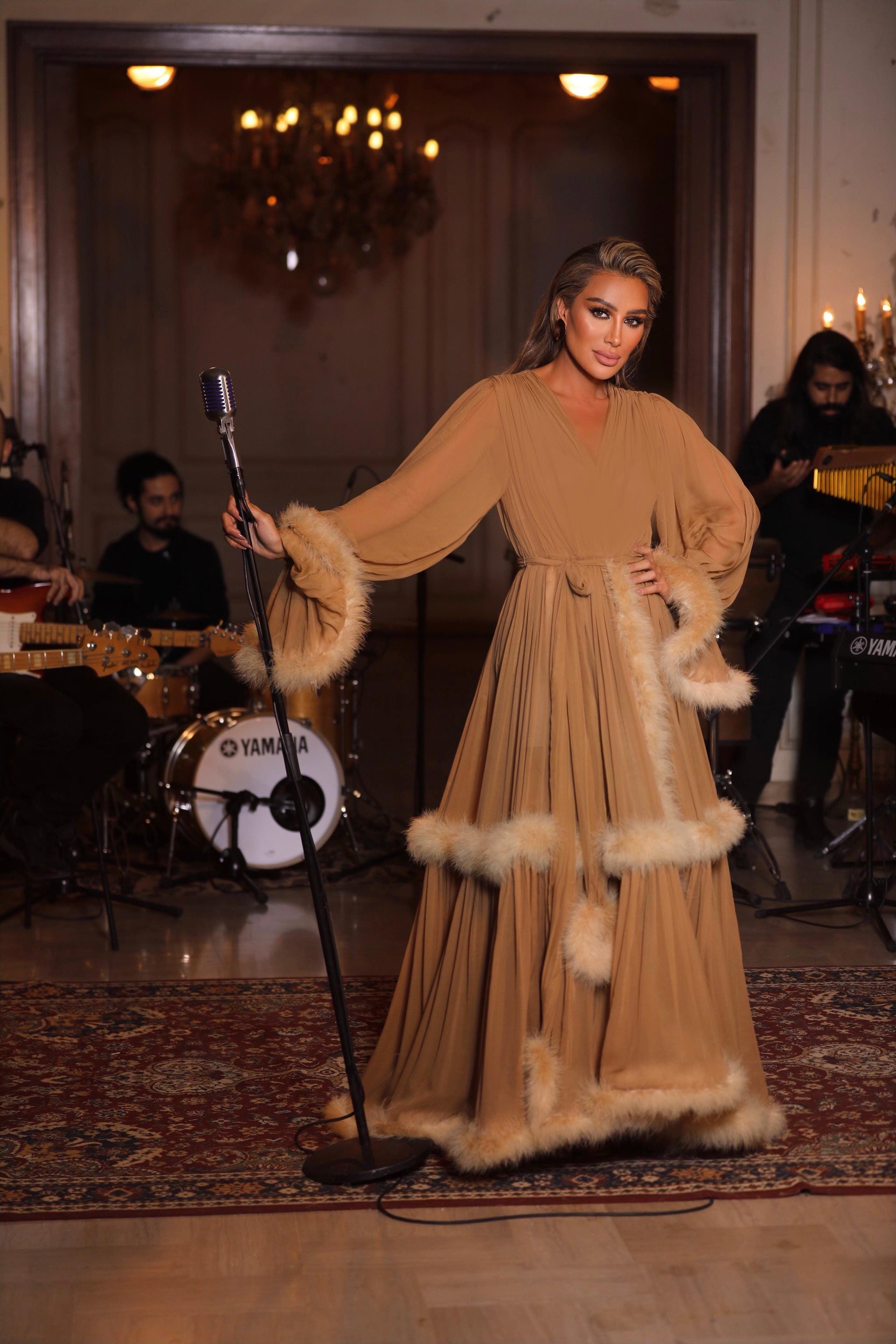 - ضمن احتفالات نهاية العام 2020 أحيت النجمة مايا دياب مؤخراً حفلاً غنائياً إفتراضياً ظهرت خلاله بإطلالة متجددة وبعيدةً نسبياً عن أسلوبها في الأزياء. إختارت مايا ثوباً طويلاً باللون البيج من Dolce&Gabbana، تميّز بخامته المنسدلة والفرو الذي زيّن أطراف التنورة والكمّين الواسعين.