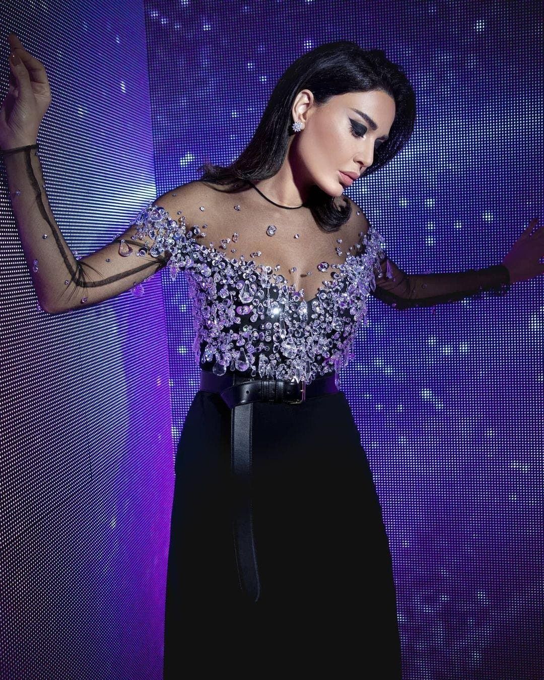 - إختارت النجمة سيرين عبد النور إطلالة أنيقة جداً للظهور في الحلقة الأولى من برنامج "إنت مين؟ The Masked Singer" الذي بدأ عرضه مؤخراً على شاشة "إم بي سي". وقد تألّقت بثوب أسود من توقيع Miu Miu تزيّن بحبيبات كريستاليّة كبيرة.