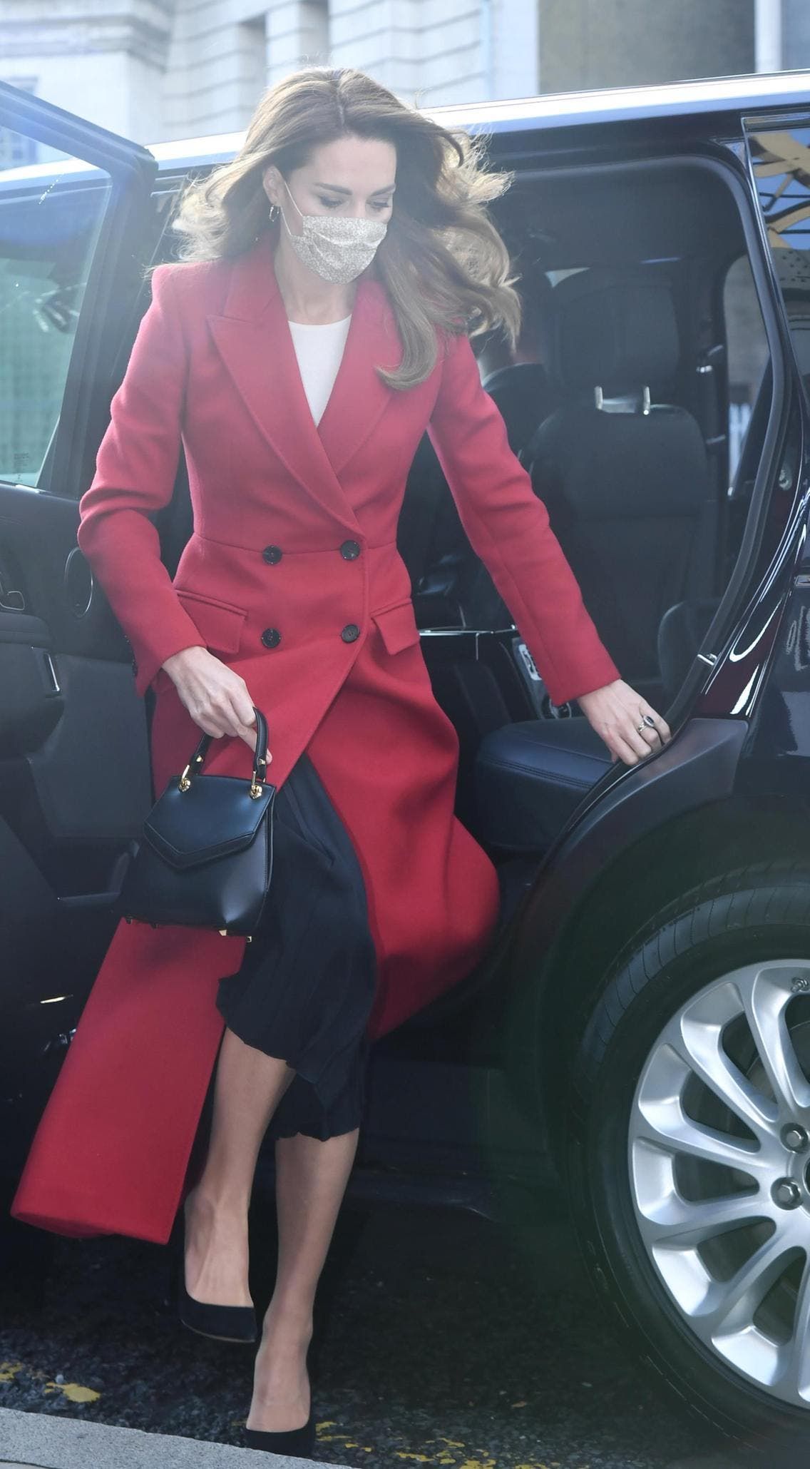 كايت بمعطف أحمر من ألكسندر ماكوين إرتدته فوق تنورة من ماسيمو دوتي