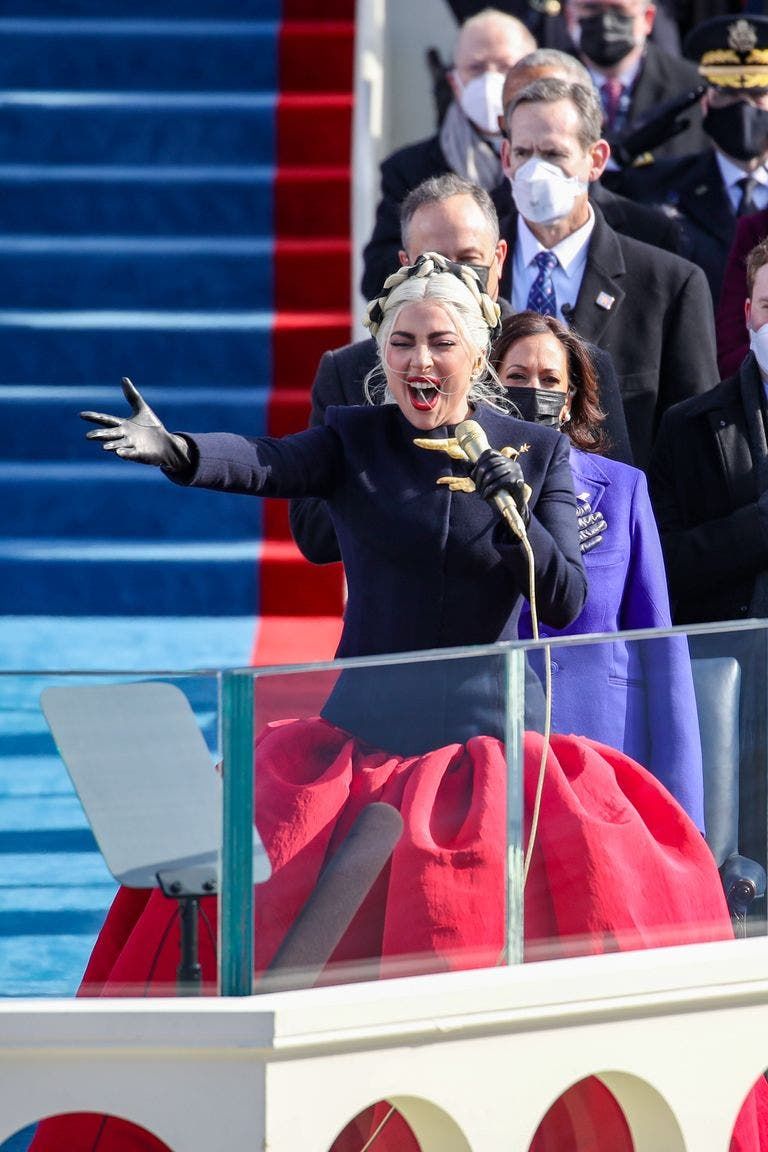 إطلالة دراميّة اختارتها ليدي غاغا لتؤدي النشيد الوطني الأميركي خلال احتفالات تنصيب جو بايدن الرئيس الـ46 للولايات المتحدة يوم أمس. أما جينيفر لوبيز فظهرت بإطلالة كلاسيكيّة راقية لتؤدي مجموعة من الأغنيات الوطنيّة في الحفل نفسه. فأي رسائل حملتها هاتين النجمتين لإطلالاتهما في هذا الحفل؟
