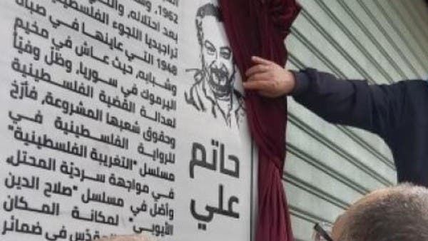 "أرّخ الرواية"ونقشت صورة للراحل على لوحة من الرخام وضعت على واجهة إحدى المباني الملاصقة للشارع.