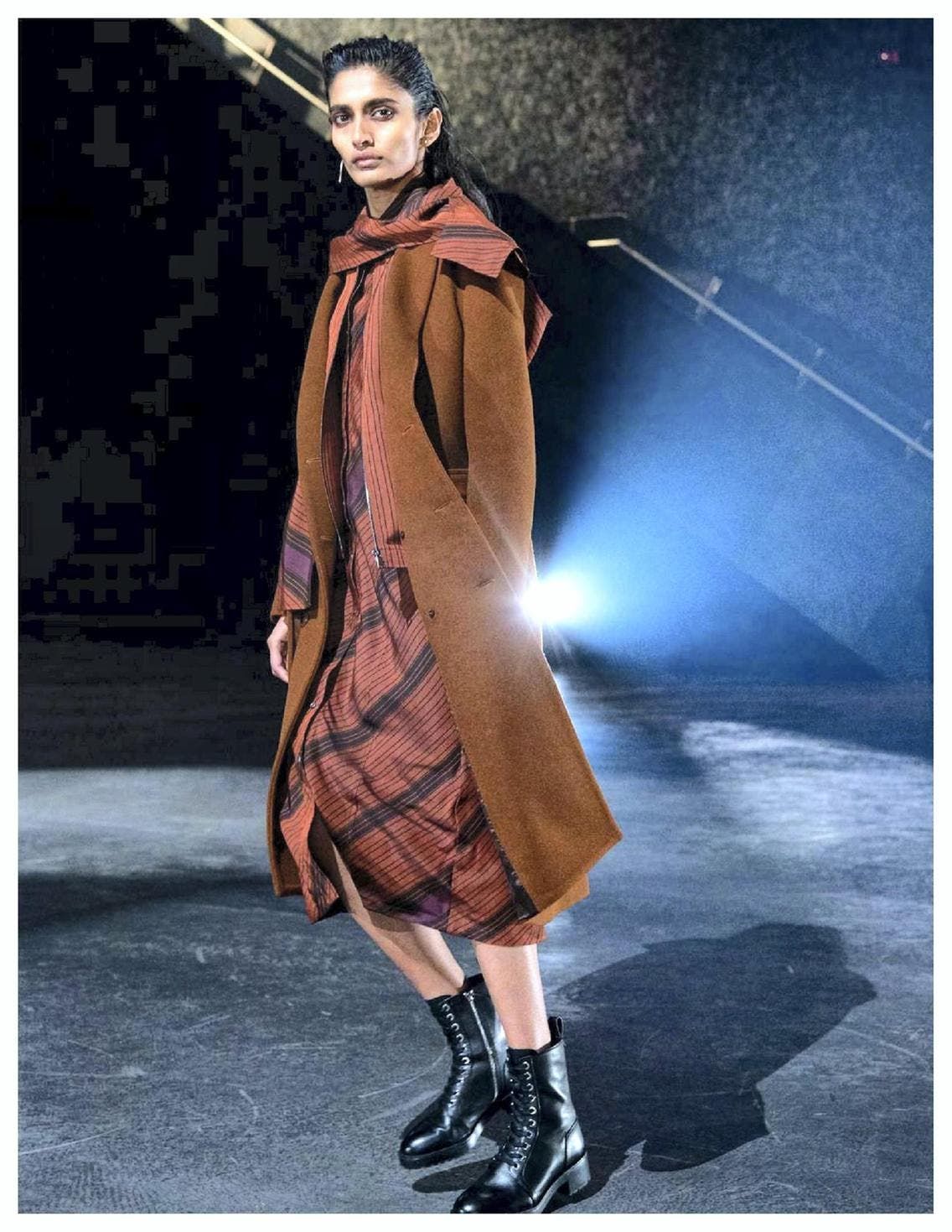 الجوخ، والتويد، والدنيم، والصوف من الخامات الكلاسيكيّة التي تكرر ظهورها في هذه المجموعة، بالإضافة إلى الخامات العصريّة الواقية من المطر. أما الألوان فبدت كأنها مستوحاة من الطبيعة الخريفيّة بألوانها الدافئة. وقد ترافقت العديد من الإطلالات مع قبعات يرتبط فيها وشاح يلتفّ حول العنق.