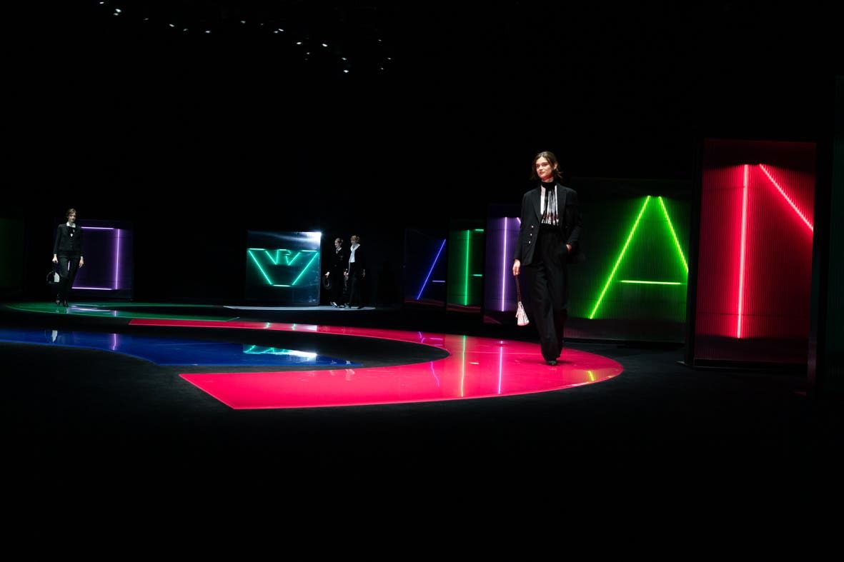 أما مجموعةُ أمبريو أرماني التي قدّمها شبابٌ وفتيات فتناغمت فيها الأشكالُ والأناقة في آن إذ أعادت الفساتينُ إلى الاذهان مجموعاتِ الثمانيناتِ من خلال القصّات في المعاطفِ والسراويل القصيرة كما عَرضَت ستراتٍ ناعمةَ الملمَس بازرار مضيئة واخيرا ستراتٍ رياضيةَ المظهر رافقت مجموعةَ أمبريو أرماني النسائية لخريف وشتاء الفينِ وواحدٍ وعشرين والفين واثنَين وعشرين.