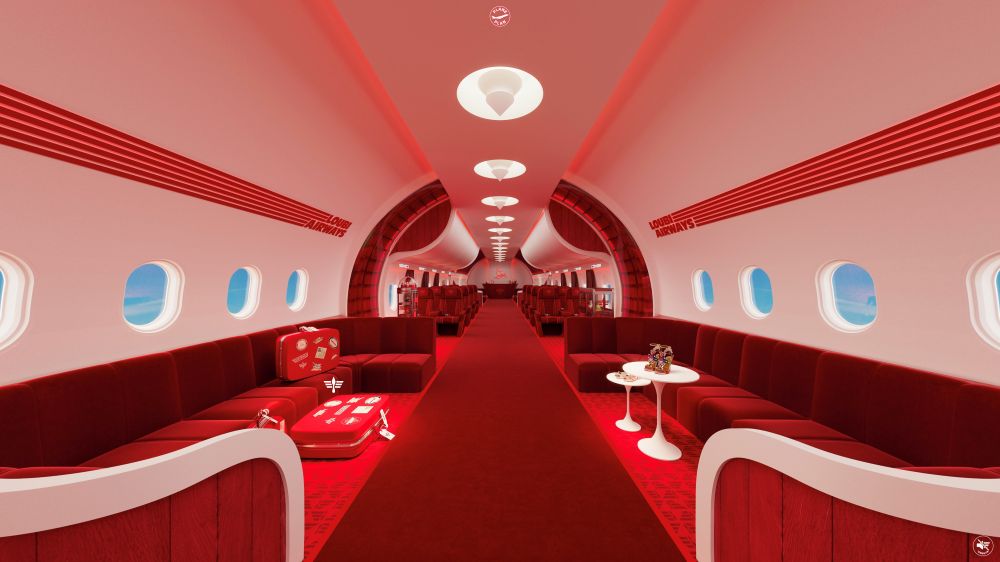 أعيد تصميم داخل طائرة "لوبي" بالكامل لتضم تفاصيل دار "كريستيان لوبوتان" الشهيرة بلونها الأحمر، إذ تم تجسيد ذلك بأرضيات حمراء ومقاعد مصممة بطبعات الدار، أما أحزمة الأمان فحملت شعار خطوط "لوبي" الجوية.