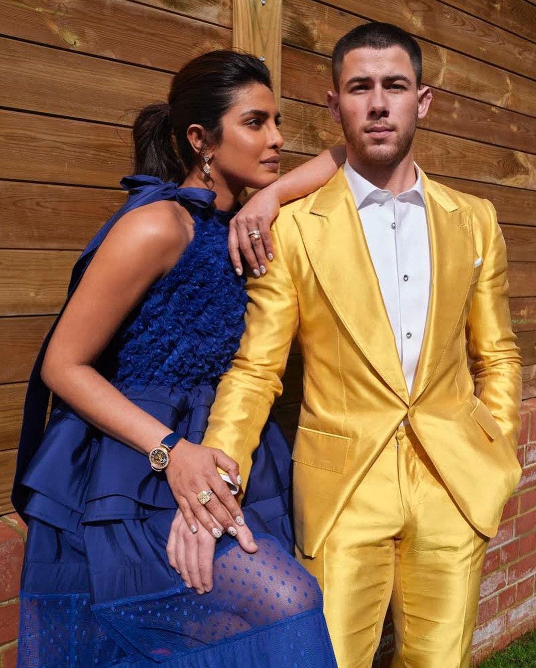 توسّط الخاتم الذي ارتدته بريانكا حجراً ماسياً أصفر بيلغ وزنه 25 قيراطا، أما أقراط الأذنين فتزيّنت بأحجار ماسيّة ذات القطع الإجاصي يبلغ وزنها 23 قيراطاً. وقد بدا النجم نيك جوناس في منتهى الأناقة ببدلة باللون الأصفر من Dolce&Gabbana نسقها مع قميص وحذاء باللون الأبيض.