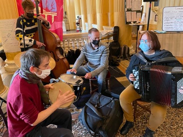 ولم يمارس الفنانون حرفتهم منذ أكثر من عام، ولتوعية المواطن الفرنسي حول ظروفهم الاقتصادية والمهنية السيئة يقوم هؤلاء الفنانون بتقديم حفلات مجانية أمام مسرح أوديون بالرغم من منع تلك العروض من قبل السلطات الفرنسية لأكثر من مرة منذ احتلال المسرح قبل شهر ونصف الشهر.