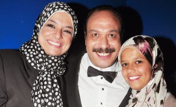 الراحل خالد الصالح يتوسط زوجته وابنته - صورة أرشيفية