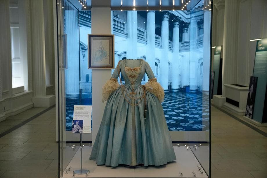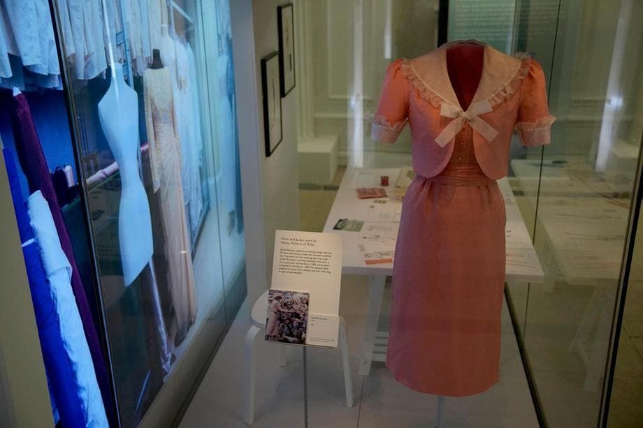 يتضمّن المعرض أيضاً ثوباً وردياً يحمل توقيع دار David Sassoon إرتدته الأميرة ديانا في وقت لاحق من يوم زفافها.
