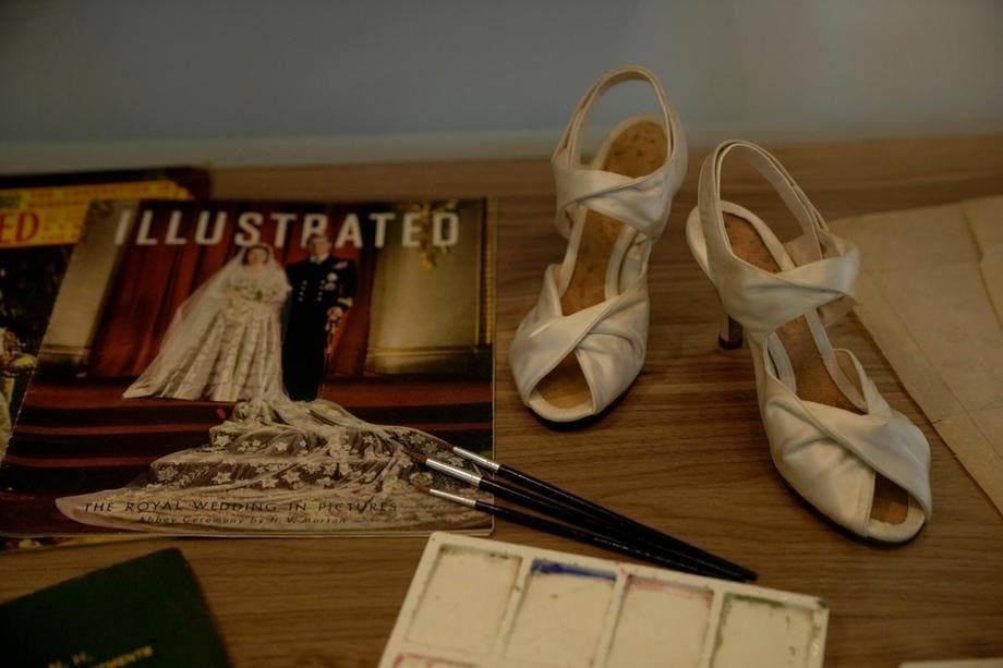 النموذج الأولي للحذاء الذي ارتدته الملكة إليزابت يوم زفافها.