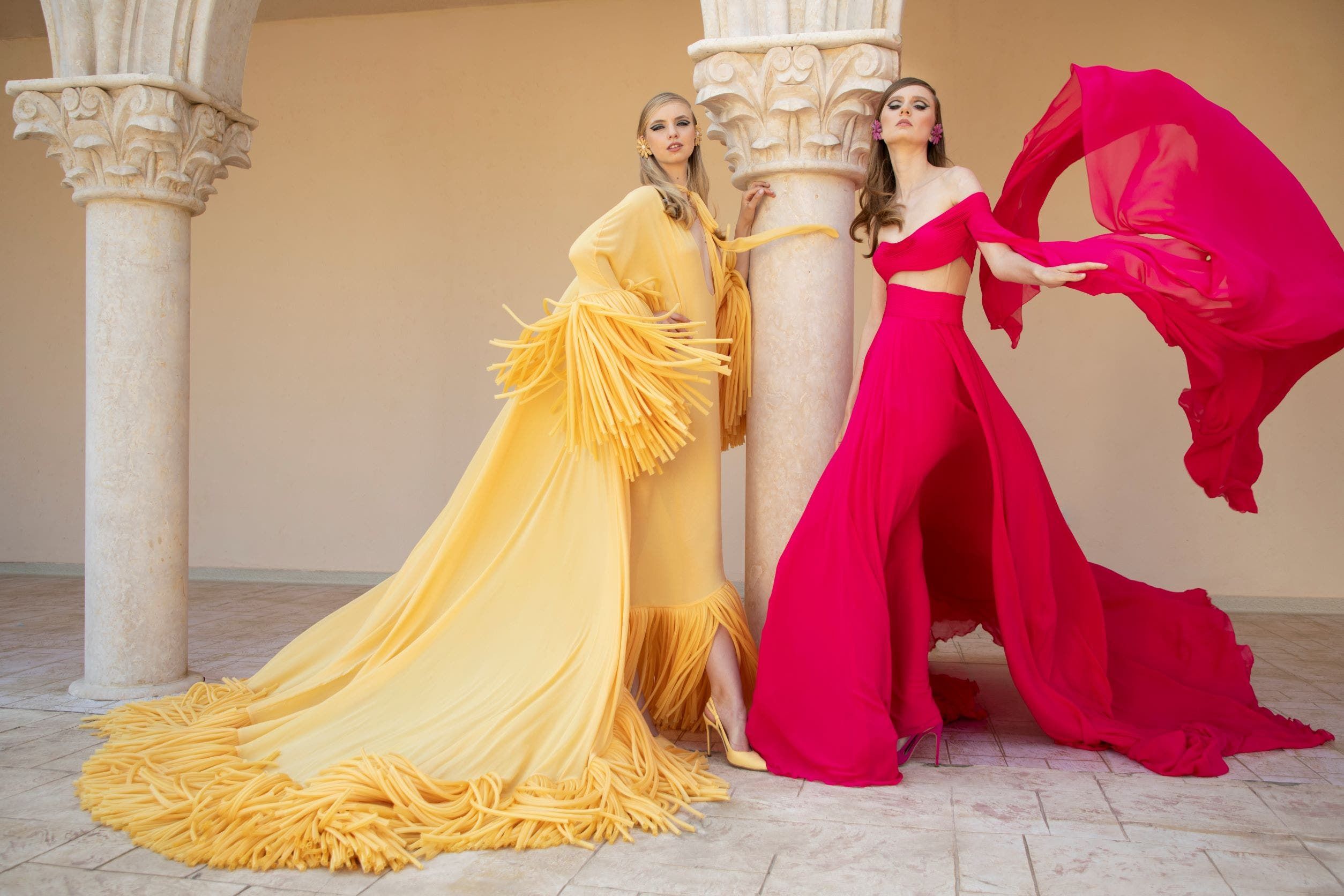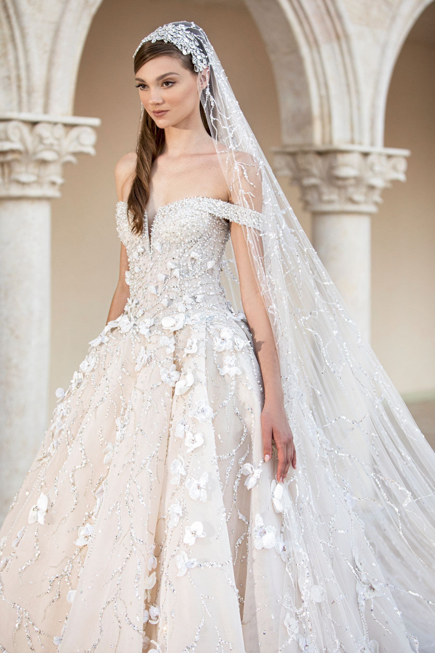 برعت مشاغل دار جورج حبيقة في إبراز كلّ مهارتها بترويض الخامات الفاخرة التي تبدو كأنها متأثّرة بإشراقة الألوان الناعمة والصافية لشمس الشتاء. وقد بدت التطريزات، المستوحاة من الطبيعة وذات الطابع الراقي والمبتكر، كما لو أنها منفصلة عن التموجات الفاخرة لقماش الأورغنزا. وجاء تنفيذ هذه التطريزات بخيوط الحرير ليجسّد مهارة تسمح لنفسها بكل التنوعات بين الشفافيّة أو الحياء، البساطة أو الفخامة: إنه نشيد عالميّ للبهجة، والأناقة، والرقّة يتوجه إلى جميع النساء من مختلف الأجيال. تعرّفوا على بعض تصاميم مجموعة جورج حبيقة من الأزياء الراقية لموسم خريف2021 فما يلي.