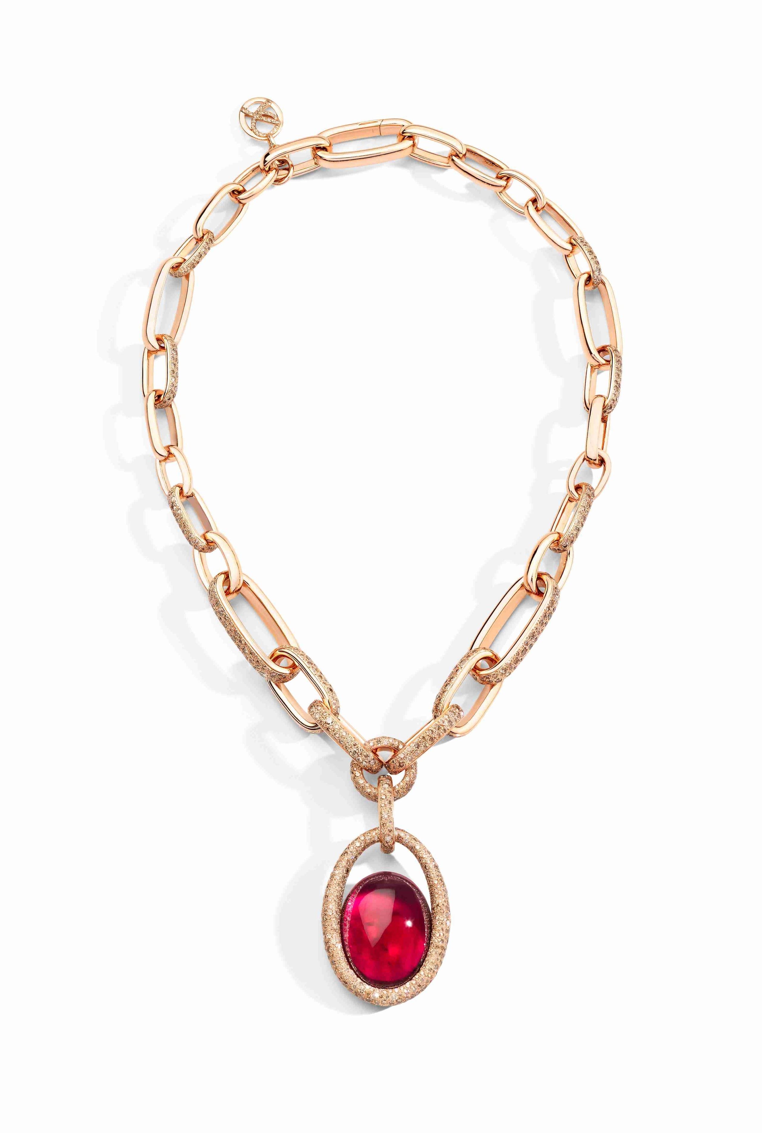 أما الجزء الثاني فشكل من تصاميم عصرية قوية للمجوهرات الراقية من تاريخ الدار الغني بالسلاسل والقلائد.