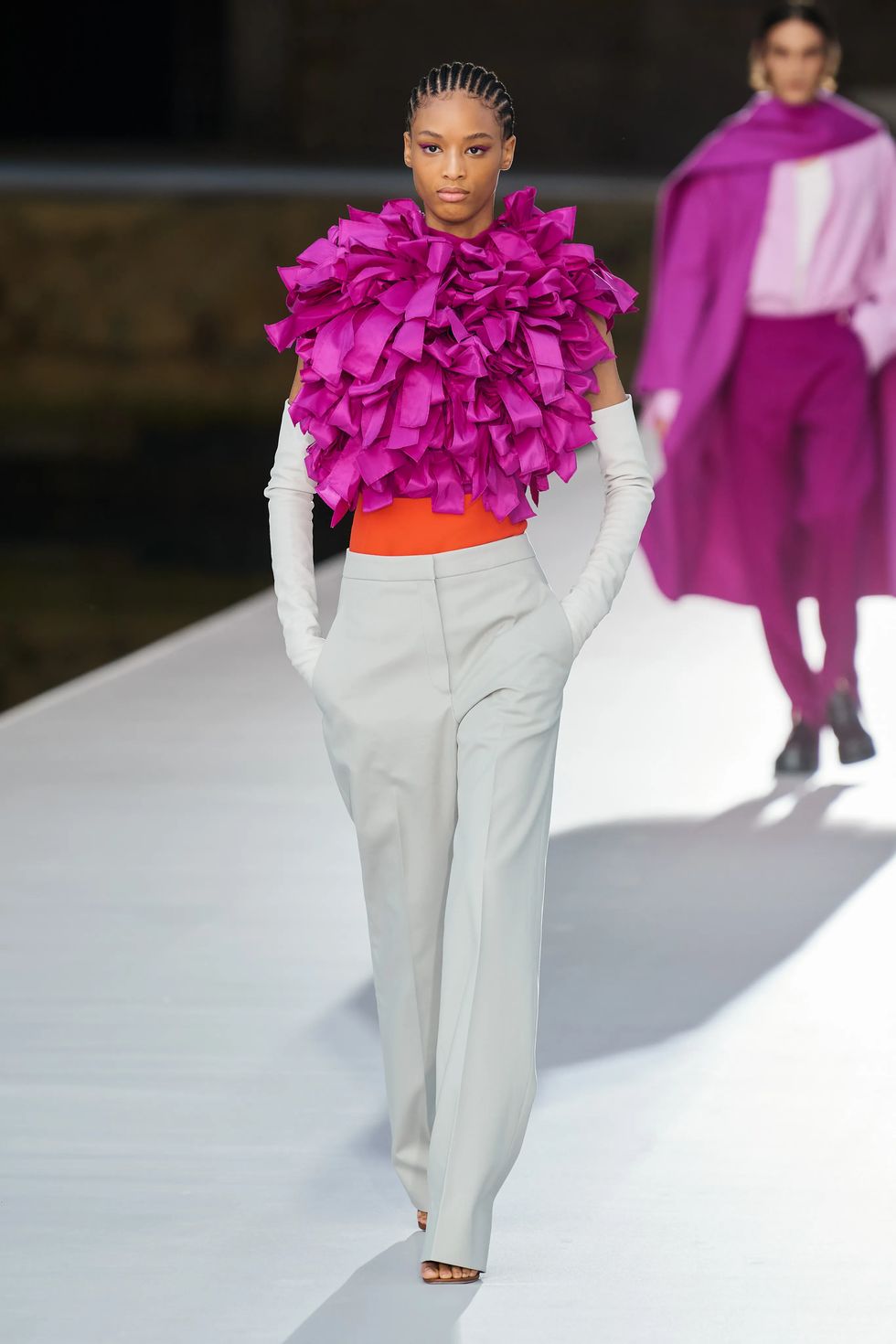 تُشكّل مجموعة دار Valentino من أزياء الخياطة الراقية للموسم المقبل تحيّة تقدير إلى مدينة البندقيّة، وقد جاءت تصاميمها مستوحاة من عودة هذه المدينة إلى الحياة الثقافيّة بعد أشهر طويلة من عزلة فرضها الوباء.