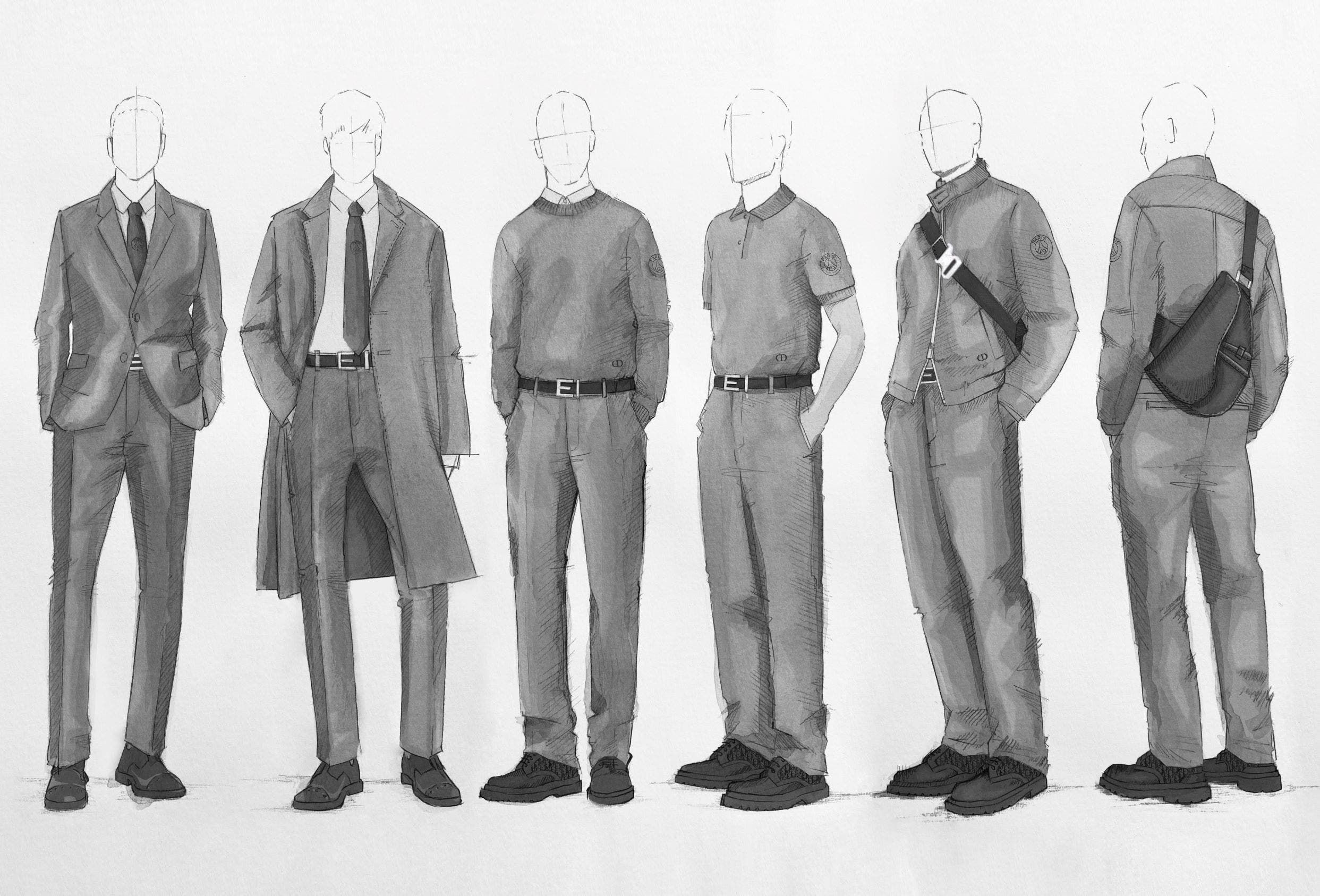 إلى ذلك تحمل إطلالات فريق "باريس سان جيرمان" الجديدة توقيع المصمم كيم جونز المدير الإبداعي لمجموعات Dior Homme، الذي اختار لها اللونين الأسود والكحلي. وتتضمن معاطف من الكشمير، بدلات كلاسيكية، أحذية سوداء اللون تم بداخلها نقش رقم كل لاعب. هذا بالإضافة إلى إطلالة "كاجوال" مؤلفة من سترة، كنزة، وقميص "بولو" تتزين بشعار الفريق. أما بالنسبة للأكسسوارات فتتضمن حقيبة Saddle من الجلد الأسود، ربطة عنق بنقشة "الجاكارد" وشاح من الكشمير، وحزام جلدي.
