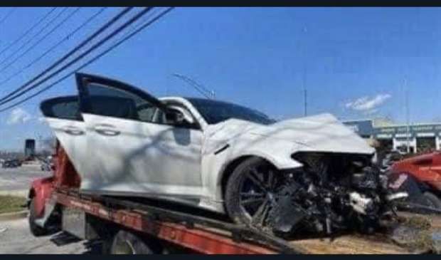 وظهرت سيارة بندق وهي مهشمة ويحملها "ونش" على الطريق الدائري.
