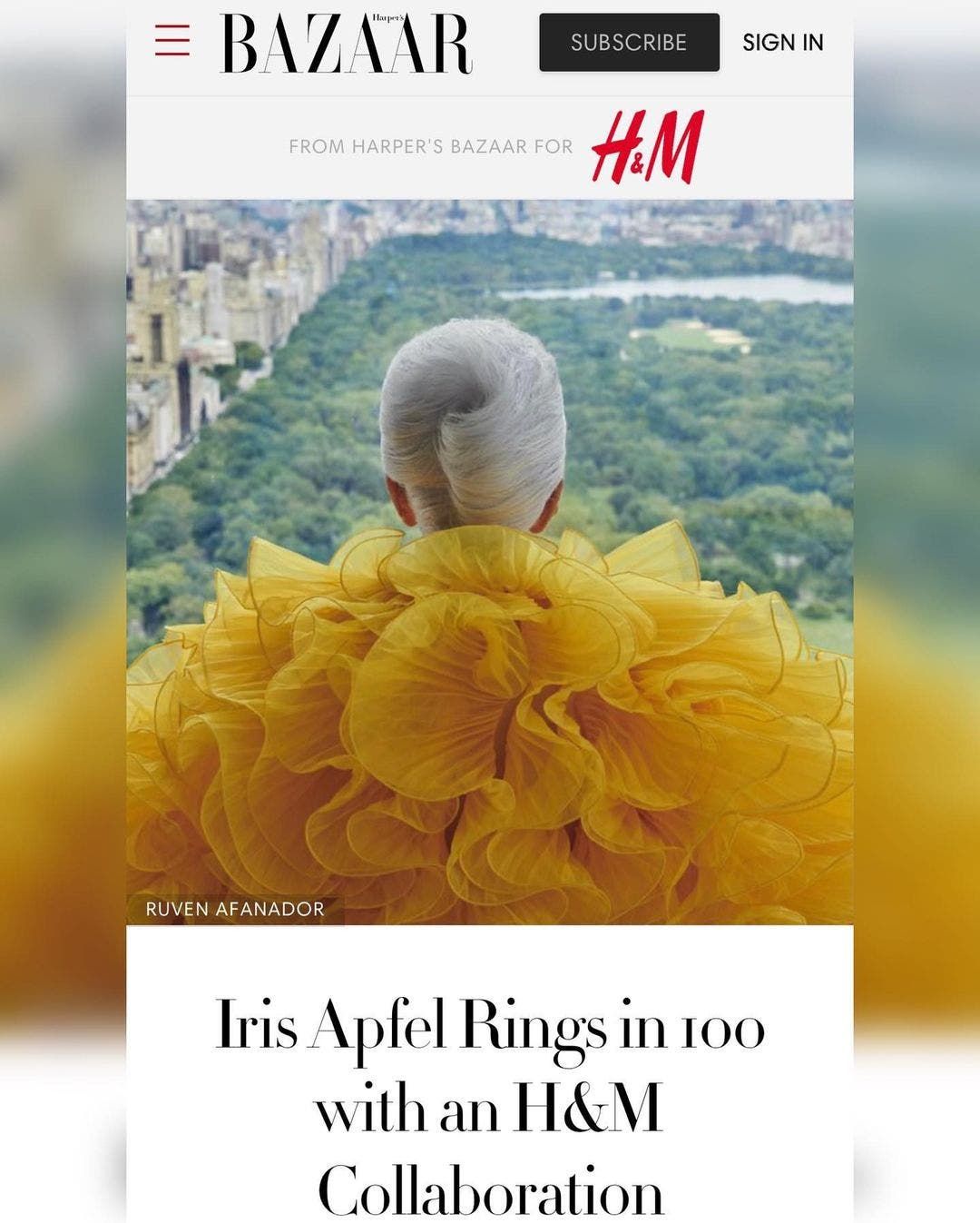 احتفلت أيقونة الموضة أيريس أبفيل بعيدها الـ100 في نهاية أغسطس الماضي. وبهذه المناسبة تعاونت مع العملاق السويدي المتخصص في الأزياء الجاهزة H&M لإطلاق مجموعة من الأزياء والأكسسوارات مستوحاة من أسلوبها الخاص، سوف تتوفر في الأسواق مع بداية العام المقبل. فما قصة هذا التعاون اللافت بينهما؟