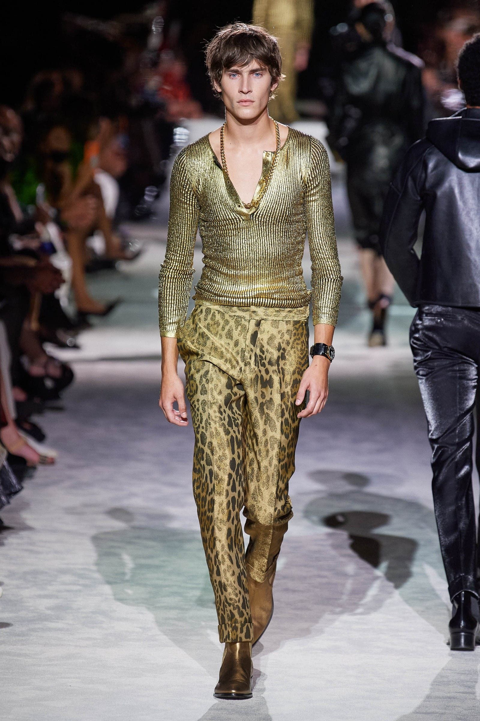اعترف المصمم توم فورد أن وسائل التواصل الإجتماعي هي التي دفعته إلى اعتماد كل هذا الإشراق في الإطلالات، فاللون الأسود يبدو قاتماً وباهتاً في الصور المنشورة على موقع إنستغرام ولذلك استبدله باللمسات المعدنيّة في العديد من إطلالاته. وهو اعتبر أن هذه الأزياء البرّاقة مثاليّة للمناسبات الليليّة والحفلات ولكنها قابلة للإرتداء أيضاً رخلال النهار بعد تجزئتها وتنسيقها قطع منها مع سروال من الدنيم أو قميص بسيطة. إنها أزياء تجسّد العودة إلى الحياة ولكن ليس إلى الحقيقة كونها تنقلنا إلى عالم ساحر ببريقه وأضوائه.