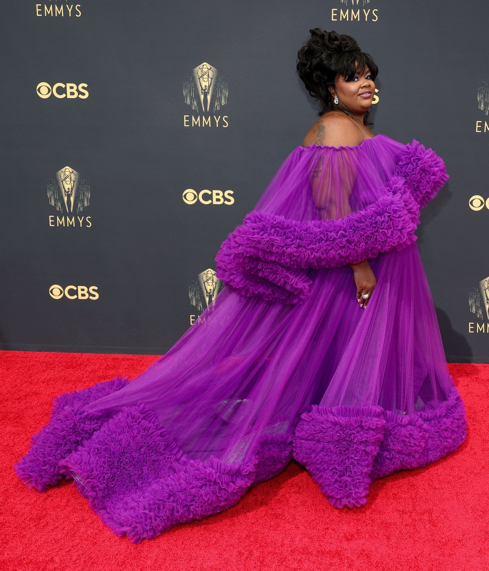 بدت الممثلة الأميركيّة نيكول باير في منتهى الأناقة رغم كونها تعاني من مشكلة البدانة. وهي تعاونت في هذا المجال مع المصمم كريستيان سيريانو المعروف بكونه يدافع عن مفهوم النظرة الإيجابيّة للجسم. وهو صمّم لها ثوباً طويلاً باللون البنفسجي تميّز بكتفيه المنسدلين والكشاكش الصغيرة التي زيّنته.