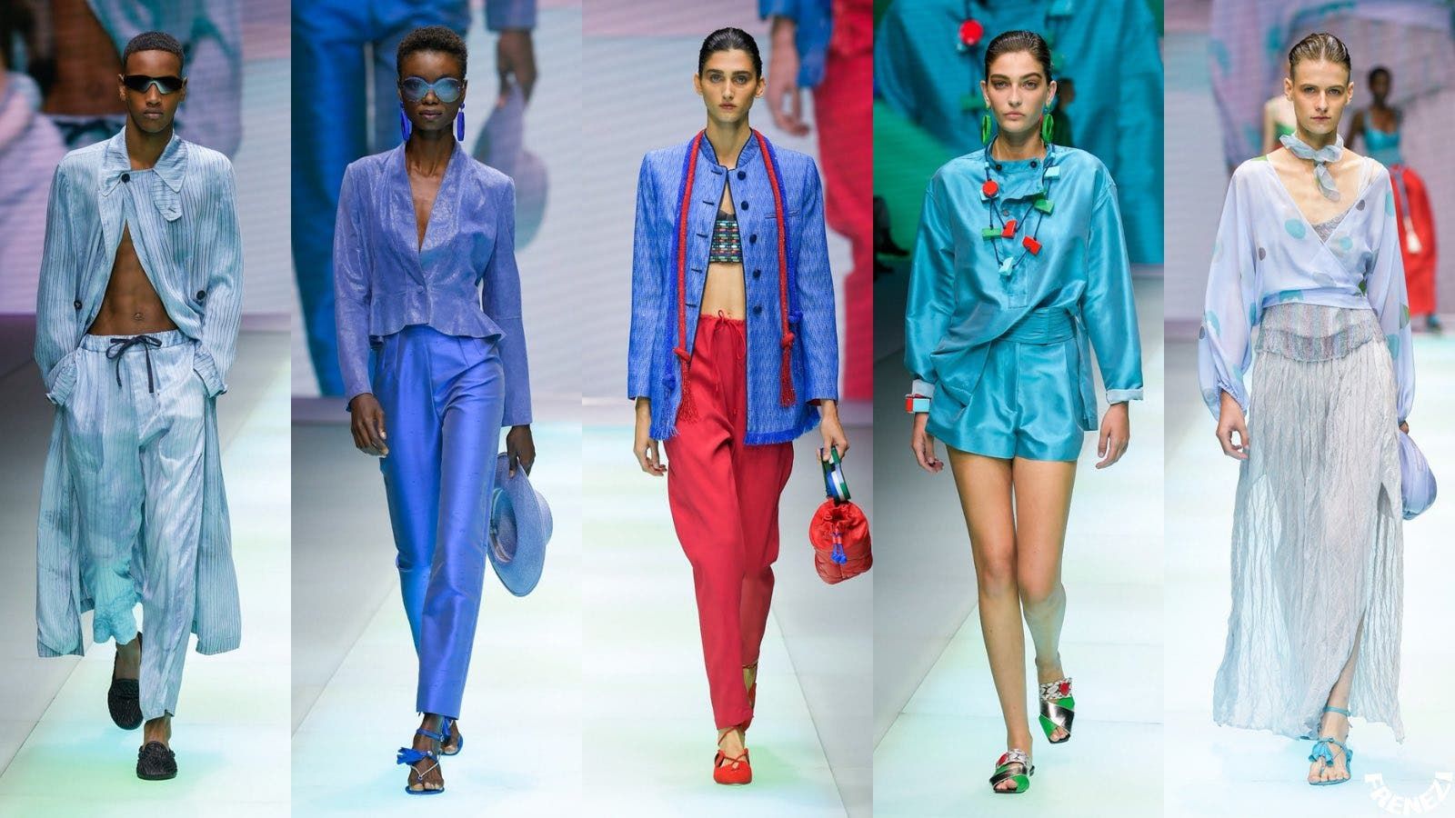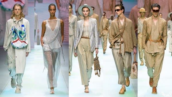 تضمّن عرض Emporio Armani الخاص بالربيع والصيف المقبلين 126 إطلالة تنوّعت بين الأزياء النسائيّة والرجاليّة. تمّ افتتاحه بمجموعة من الإطلالات التي تمّ تنفيذها بخامة الدنيم، وقد قال السيد أرماني في هذا المجال: "أطلقت هذا الخط في العام 1981بعد أن رأيت حاجةً لدى جيل الشباب لأناقة منعشة ومتجددة، وهذا ما حاولت أن أعرضه عليهم. بدأنا بتصاميم مصنوعة من الدنيم ثمّ توسّعنا باتجاهات مختلفة مع الاعتماد على ديمقراطية وانفتاح جديدين. وقد استطاع هذا الخط من الأزياء عاماً بعد عام أن يوسّع أهدافه وجمهوره معتمداً على الشباب كحالة ذهنيّة أكثر منها فترة عمريّة".