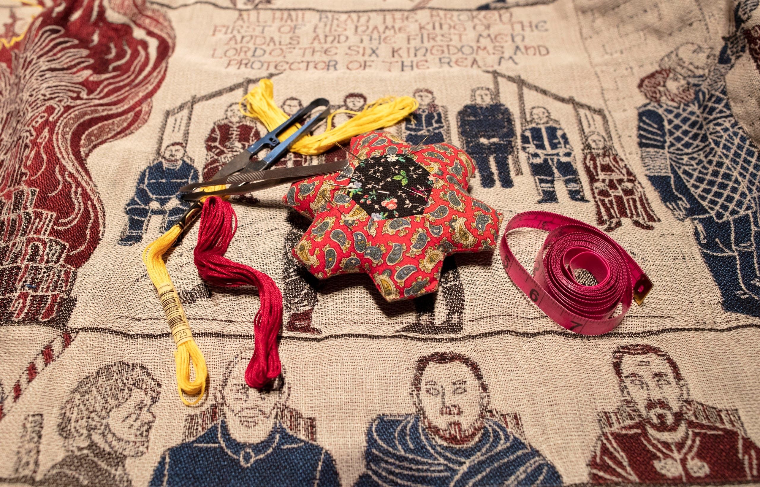 ورغم أن المنسوجة أنجزت بأكثريتها آليا، تمت الاستعانة على مدى سنتين بـ30 متطوعا للاهتمام بالتفاصيل والألوان المختلفة التي تصوّر بدقة الأحداث المفصلية في المسلسل.