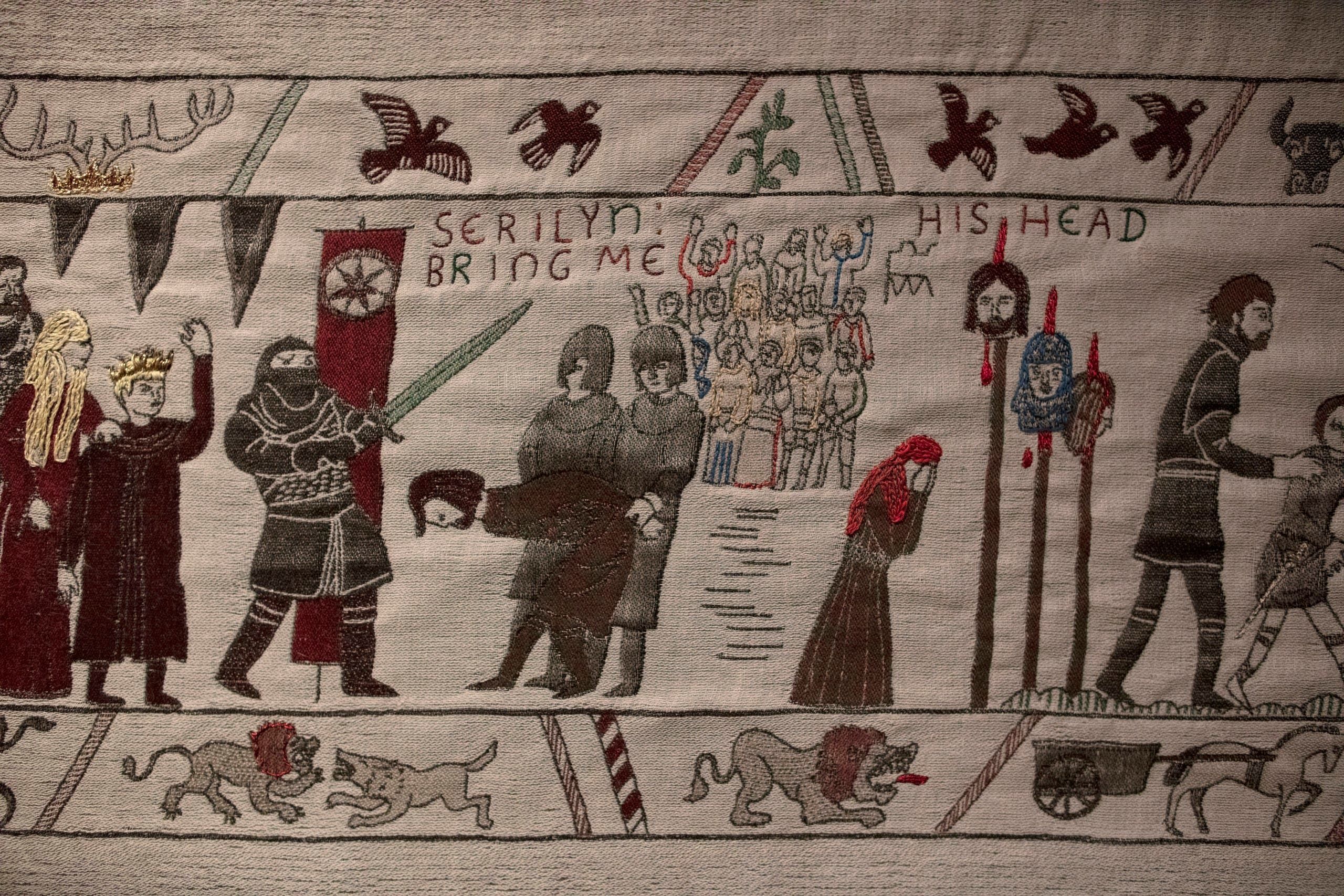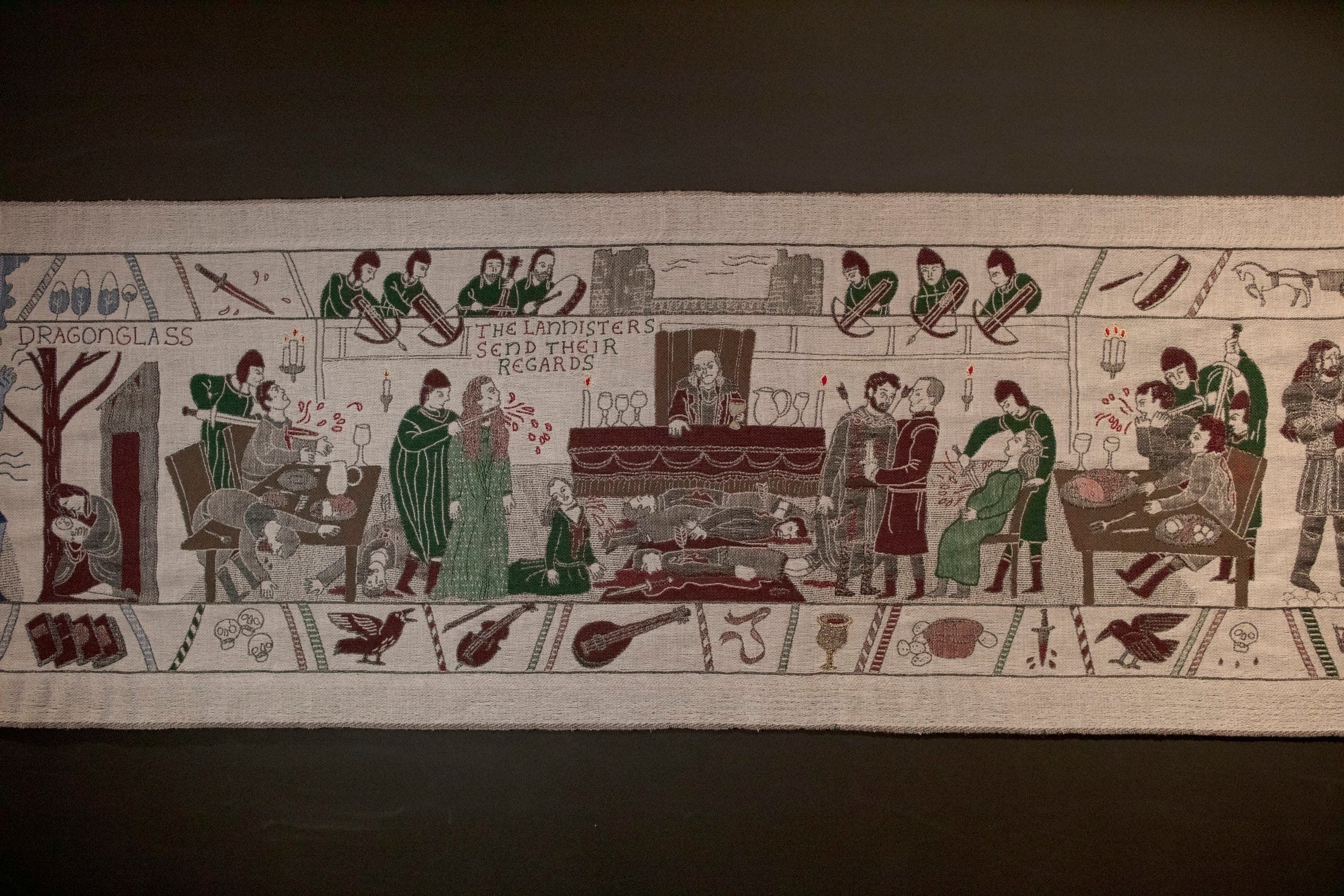وقد صُممت هذه المنسوجة البالغ طولها 90 مترا لتروي قصة المواسم الثمانية من هذا المسلسل الخيالي الذي تدور أحداثه في العصور الوسطى وصُوّرت مشاهده في بلفاست. وقد حقق هذا العمل نجاحا كاسحا في أنحاء العالم أجمع.