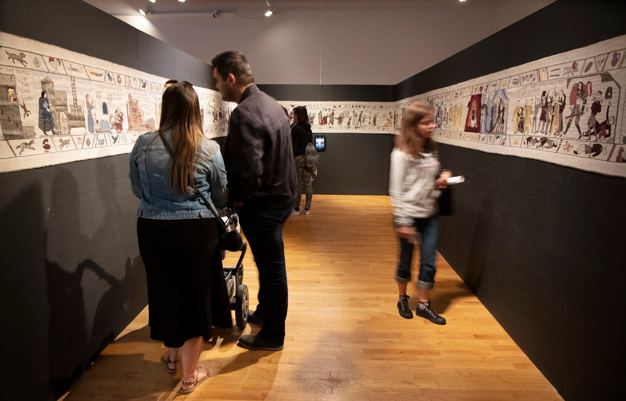 وانتهى العمل في أجزاء المنسوجة التي تمثل المواسم السبعة الأولى من المسلسل. وفور الانتهاء من الجزء المتعلق بالموسم الثامن، سيُنقل العمل إلى فرنسا لعرضه إلى جانب منسوجة بايو الشهيرة التي تروي غزو إنجلترا في القرن الحادي عشر وتمتد على 70 متراً.