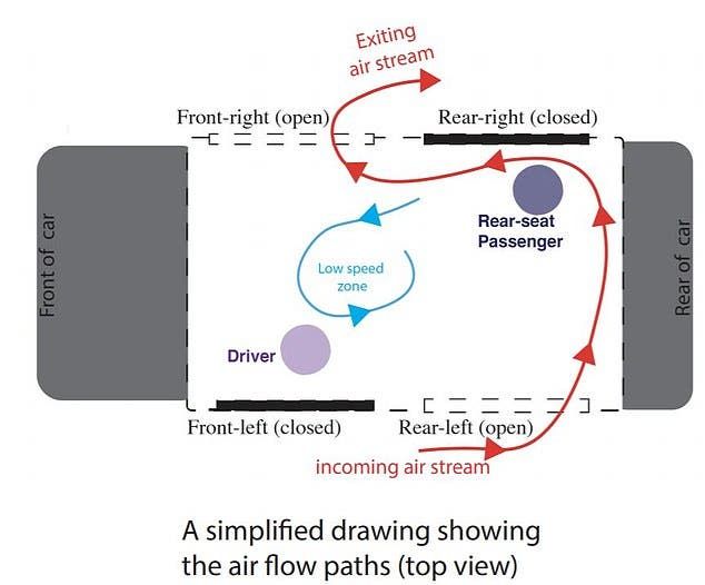 تم اختبار جميع المجموعات الممكنة من النوافذ المفتوحة، ولم يكن الفتح الحدسي للنافذة بجوار الراكب والسائق هو الأكثر فعالية.