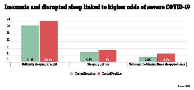 وتوصل الباحثون أن حوالي 24%، أي بواقع واحد من كل أربعة من المصابين بكوفيد-19، كانوا يواجهون صعوبات في النوم ليلاً مقارنة بنسبة 21%، أي واحد من كل خمسة، ممن لم يصابوا بالعدوى.