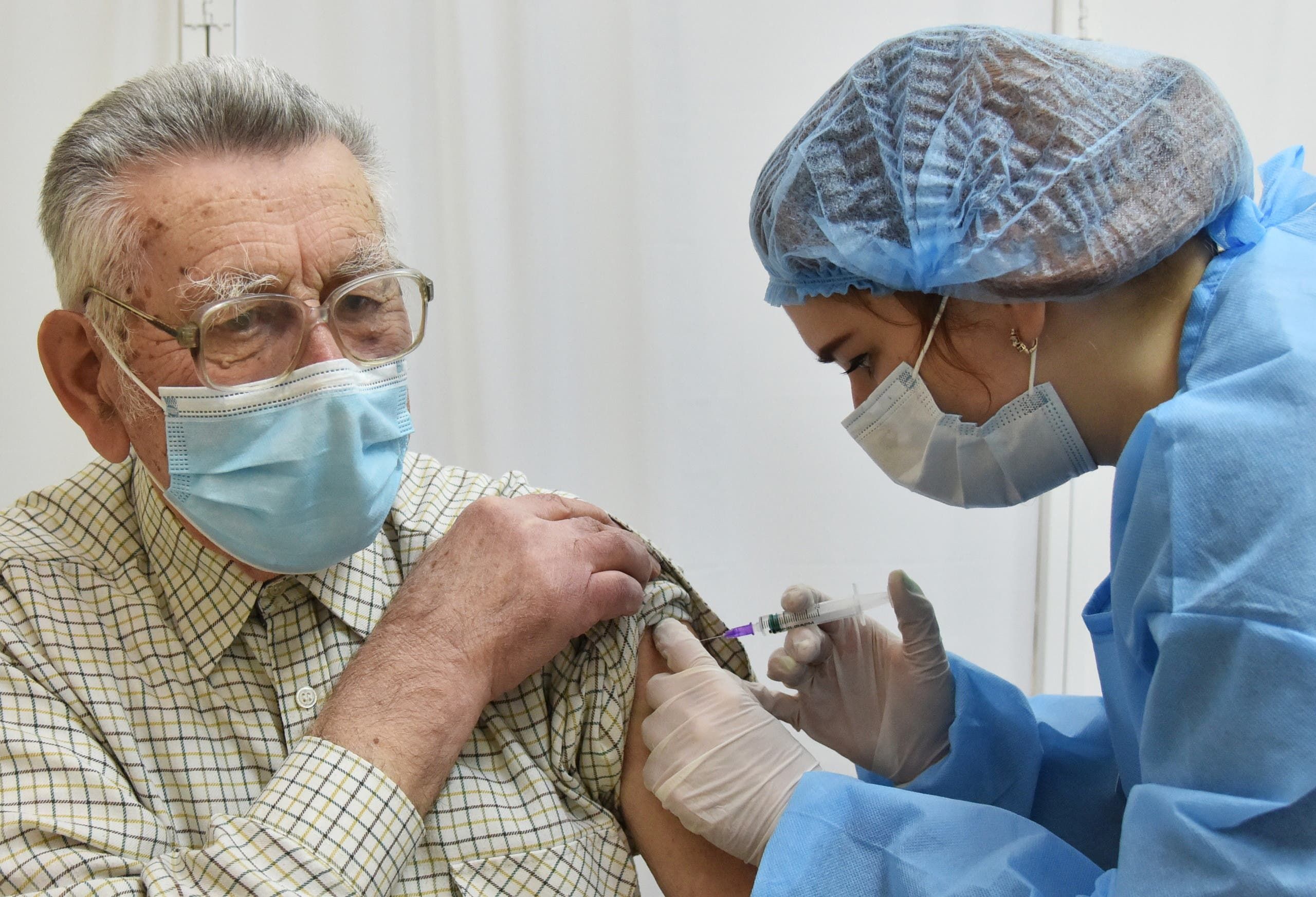 مسن في أوكرانيا يتلقى جرعة من لقاح أسترازينيكا