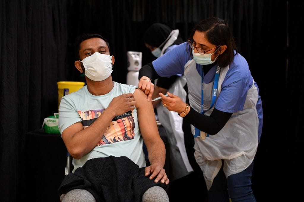 من أحد المراكز الصحية لتلقي لقاح كورونا في لندن - فرانس برس
