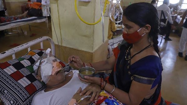 طبيبة في مستشفى في حيدر أباد تعاين مريضاً مصاباً بالفطر الأسود
