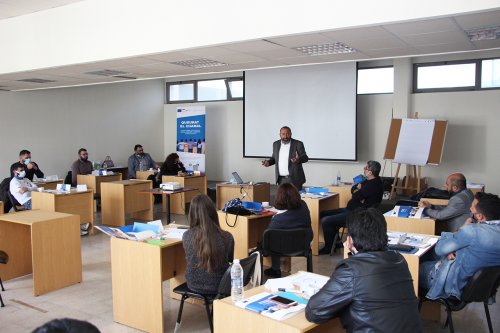 وهدفت هذه الورشة الى تمكين المشاركين من معرفة أهمية التواصل الناجح وعناصره ومهارات الحديث والإصغاء، تعريف الحوار والتمييز بين الحوار والسجال والنقاش، تعريف النزاع وطرق إدارته واكتساب مهارة التفاوض والوساطة.
