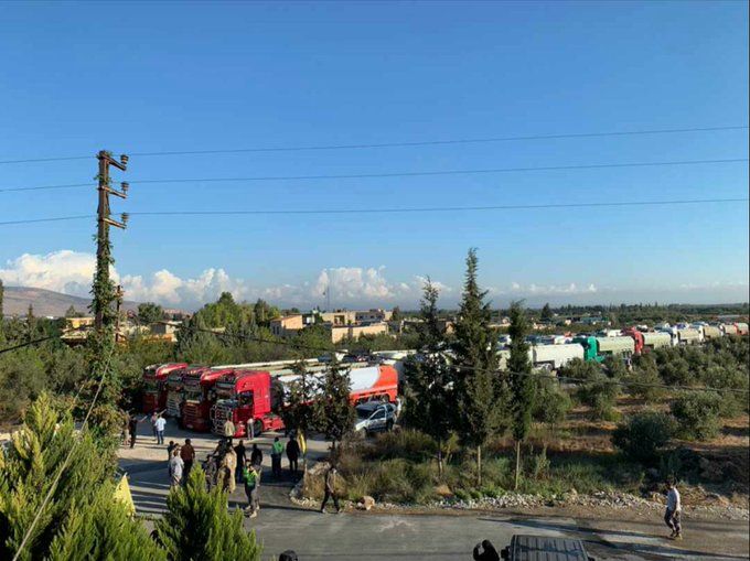 أظهرت فيديوهات تداولها رواد مواقع التواصل، شاحنات محملة بالنفط الإيراني، بعد أن أفرغت السفينة الإيرانية حمولتها في مرفأ بانياس بسوريا، وبدأت الشاحنات بنقل هذه المواد إلى لبنان برا.