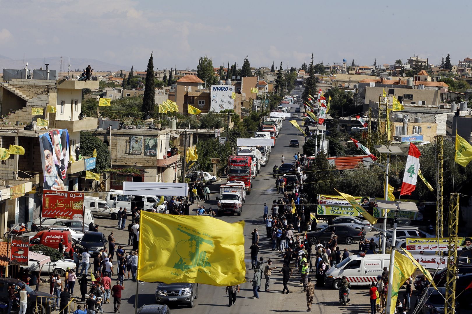 تلفزيون “المنار” التابع لـ”حزب الله” أكد أن “قافلة من نحو 20 شاحنة تحمل وقودا إيرانيا دخلت لبنان من شمال شرق البلاد قرب قرية العين وكل صهريج يحتوي على 50 ألف لتر من مادة المازوت”، موضحاً أن “لافتات رُفعت تعلن أن حزب الله كسر الحصار على لبنان”.